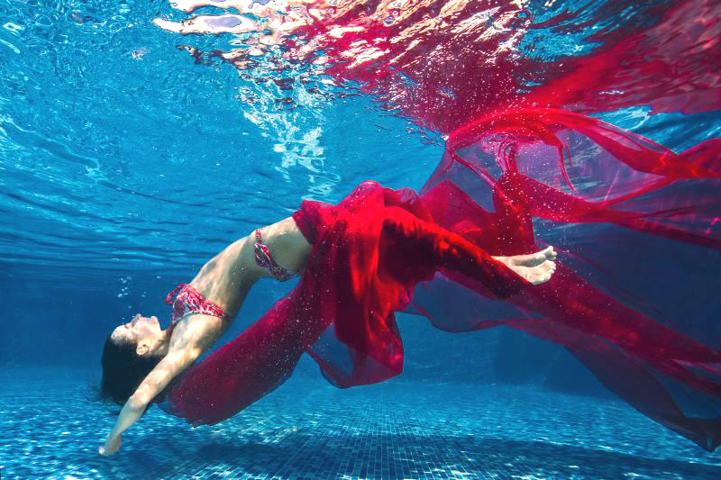 | Якщо Ви вже зважилися на підводну зйомку (або навіть якщо поки що роздумуєте), нижче кілька порад, щоб краще зрозуміти, як відбувається процес, і підготуватися до фотосесії.  1. Безпека насамперед! До своєї роботи я підходжу дуже відповідально. І хоча фотосесії у басейні безпечні, обов'язково перед зйомкою проходить інструктаж, що стосується техніки безпеки. Інструктаж проводжу я чи мій помічник. Адже нам потрібно, щоб Ви отримали не тільки хороші знімки, але й задоволення від самого процесу. Я завжди стежу не тільки за знімальним процесом, а й за самою моделлю – чи почувається вона добре чи занурення доставляють дискомфорт. Також я завжди попереджаю - у разі, якщо Ви себе неважливо відчуваєте, нервуєте, змерзли або просто втомилися, кажіть мені обов'язково! Краще трохи відпочити, ніж намагатися зробити якнайбільше, вибиваючись із сил. Не хвилюйтеся, ми все встигнемо. 2. Ви повинні бути відпочилими та не голодними. Хто з нас не знає, який добрий апетит буває на морі після довгого купання. Вода забирає чимало сил та енергії. І навіть якщо фотосесія триває лише годину, краще бути підготовленою. Інакше втома передасться на фотографії, і ви не отримаєте ідеальних знімків. 3. Зробіть кілька повільних вдихів-видихів перед тим, як зануритися. Це трохи заспокоїть та розслабить Вас, а також наситить тканини киснем для комфортного занурення. 4. Якщо перебування у воді досить тривале (особливо у хлорованому басейні), можливе почервоніння очей. У мене є очні краплі. Але якщо Вам потрібні спеціальні краплі очей, візьміть їх з собою. 5. Підводне позування відрізняється від звичних нам поз у стандартних фотосесіях. Намагайтеся бути спокійною та розслабленою. Якщо Ви рухатиметеся швидко, Ви швидше втомитеся і видихнетеся. Під водою найкраще виходять кадри при плавних, повільних рухах. Занурюючи, люди схильні під водою мружитися і напружувати м'язи обличчя. Так само мимоволі затискаються пальці рук і ніг. Якщо утримувати свою увагу на розслабленні кінцівок, це, по-перше, розслабить і все тіло, і, по-друге, рухи будуть гармонійнішими. Відповідно, і кадри вийдуть красивішими.  6. Під час зйомки намагайтеся не розмахувати сильно руками та ногами, так як, по-перше, в такому випадку просто не вдасться красиво позувати, а, по-друге, створюватиметься велика кількість бульбашок, які псуватимуть кадр (якщо, звичайно, бульбашки не є частиною ідеї). 7. Що стосується макіяжу, то тут два варіанти - або робити гарний водостійкий макіяж, або робити його взагалі. Звичайно, як і в будь-якій фотосесії, макіяж – важлива складова гарного образу. Для портретів дуже бажано мати якісний make-up. Але, якщо такої можливості немає, краще не робити жодної. Повірте, природність виглядає набагато краще, ніж розплився макіяж. 8. З зачіскою та сама ситуація. Тут можливі або різноманітні плетіння і зачіски з шпильками-невидимками, або просто розпущене волосся. Природно, немає ніякого сенсу робити укладання з використанням пласкі і прасок, - це все зникне після першого ж занирування під воду. 9. Одяг для фотосесій підійде будь-яка, що відповідає самій ідеї зйомки. Це може бути і сукня, і якийсь тематичний костюм, і купальник. Дуже добре в кадрі виглядає однотонний купальник із довгою спідницею або тканиною такого ж кольору. Тканина та сукні для підводної фотосесії є у мене в наявності. 10. Ви можете допов